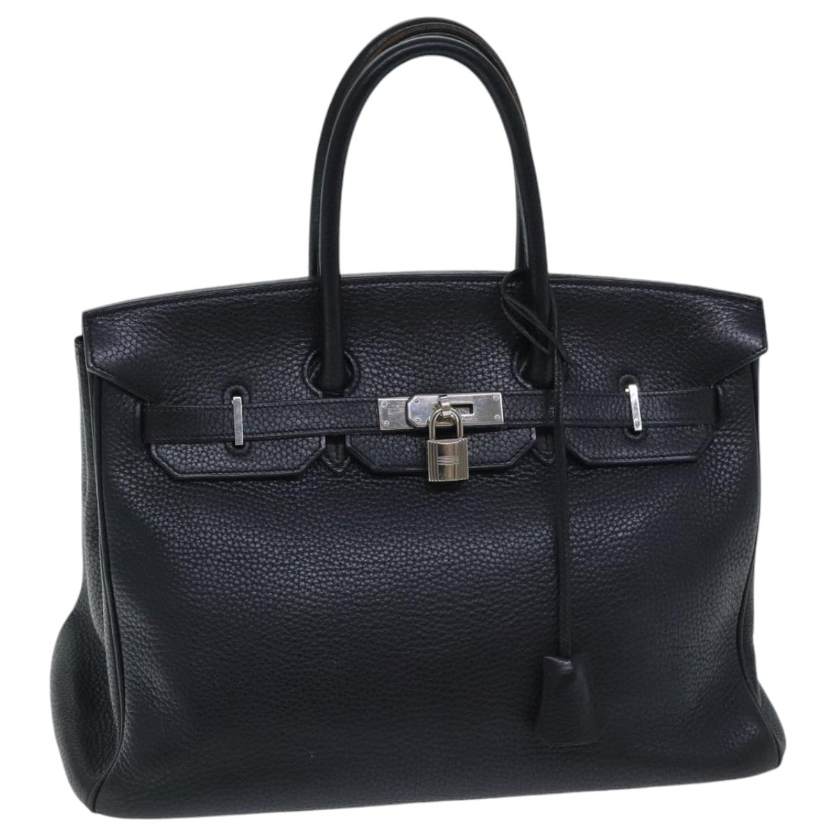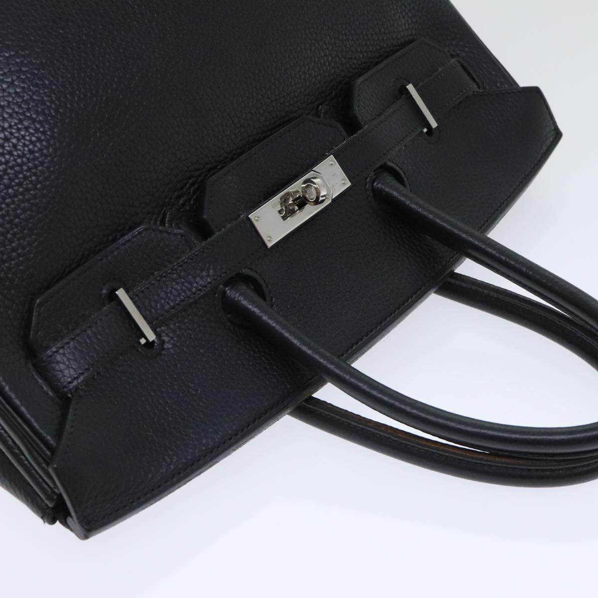 Hermes Birkin Handbag Black Clemence with Palladium Hardware