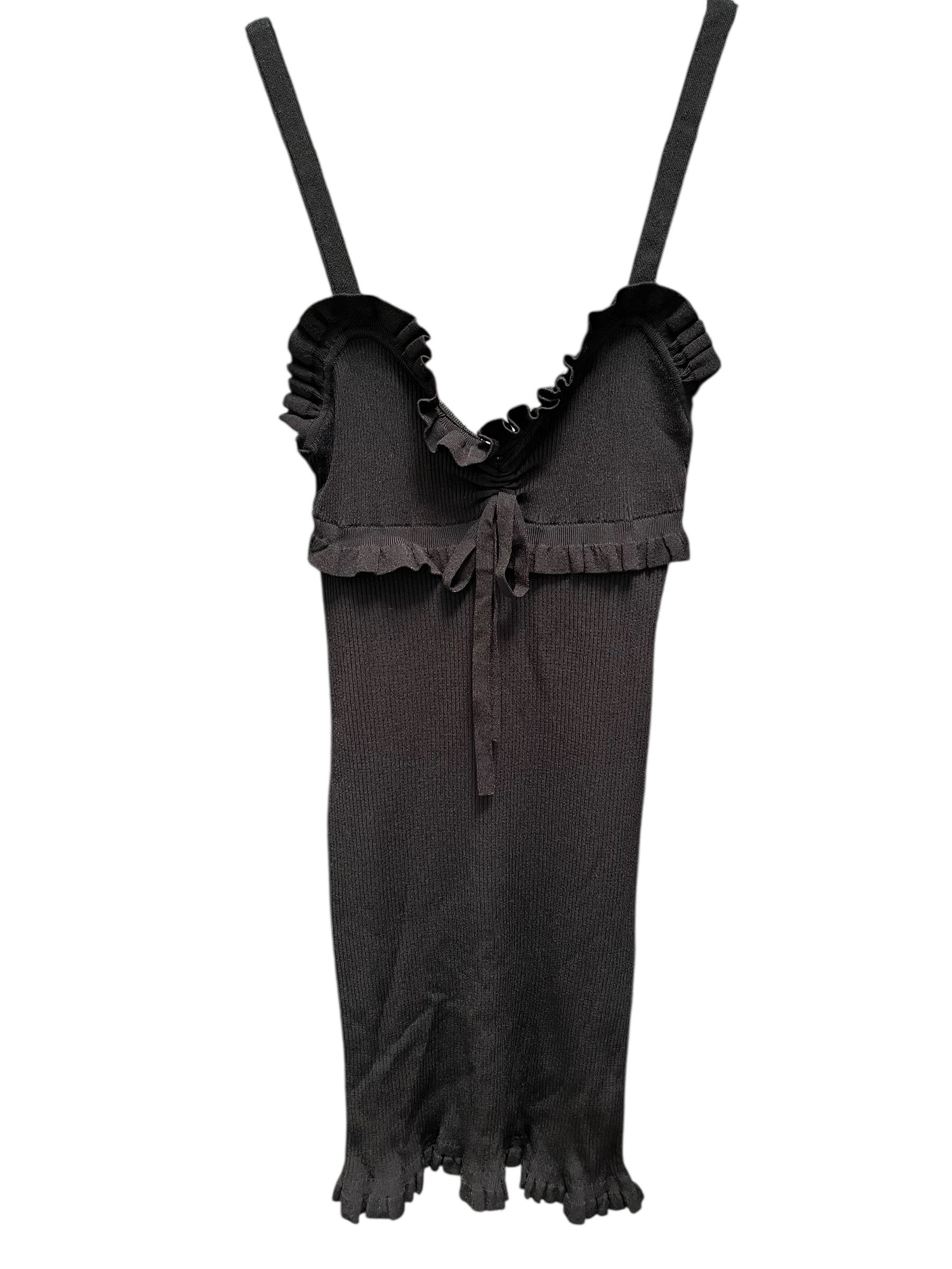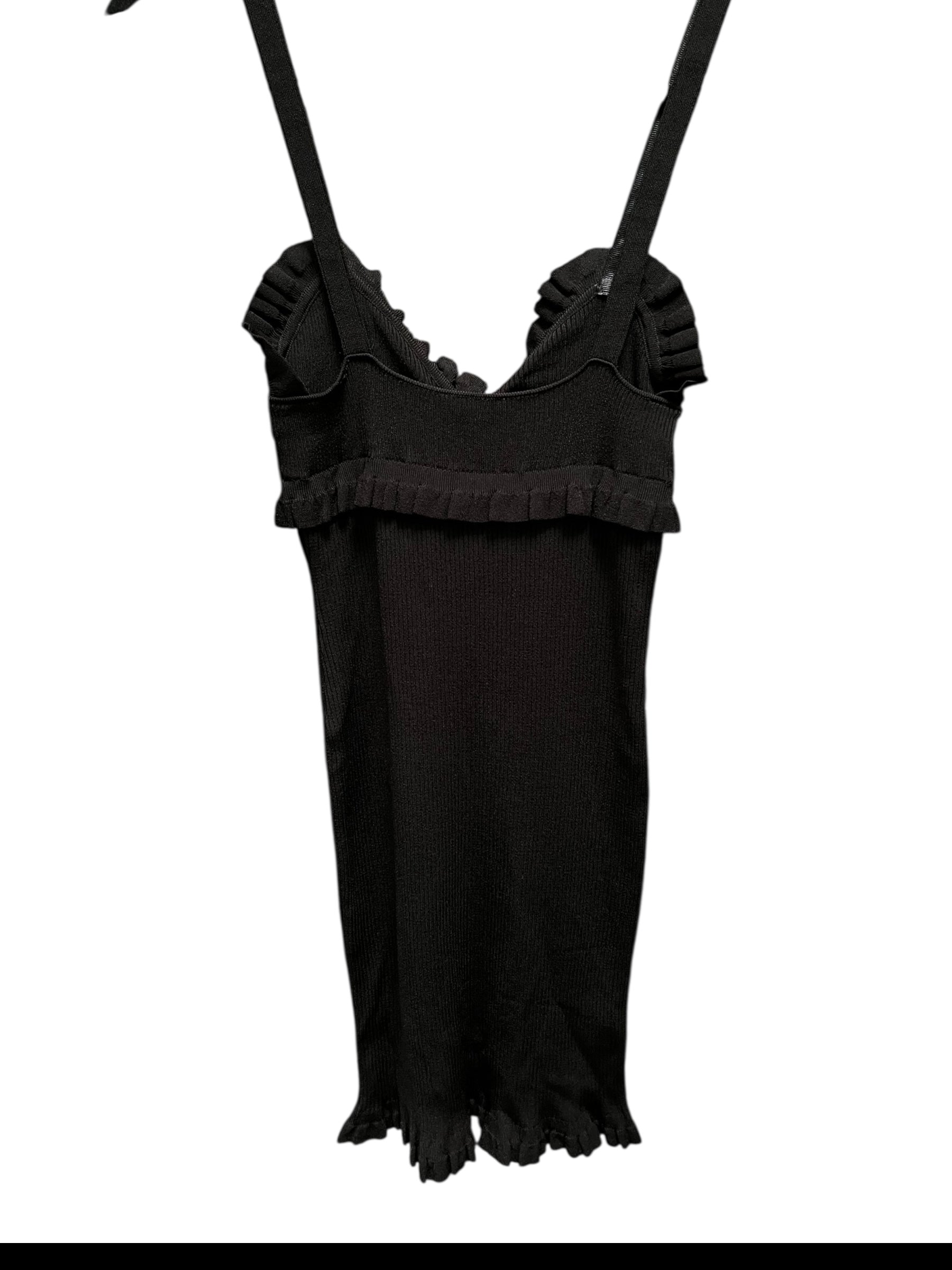 522746 Kenzo Paris SZ S black ruffle neck sleeveless mini dress 6/21/25