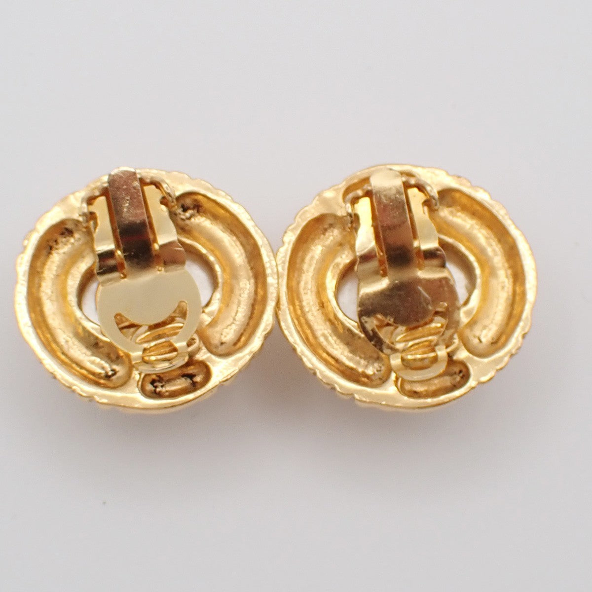 Chanel Vintage Round Clip-On Earrings Metal with Faux Pearl