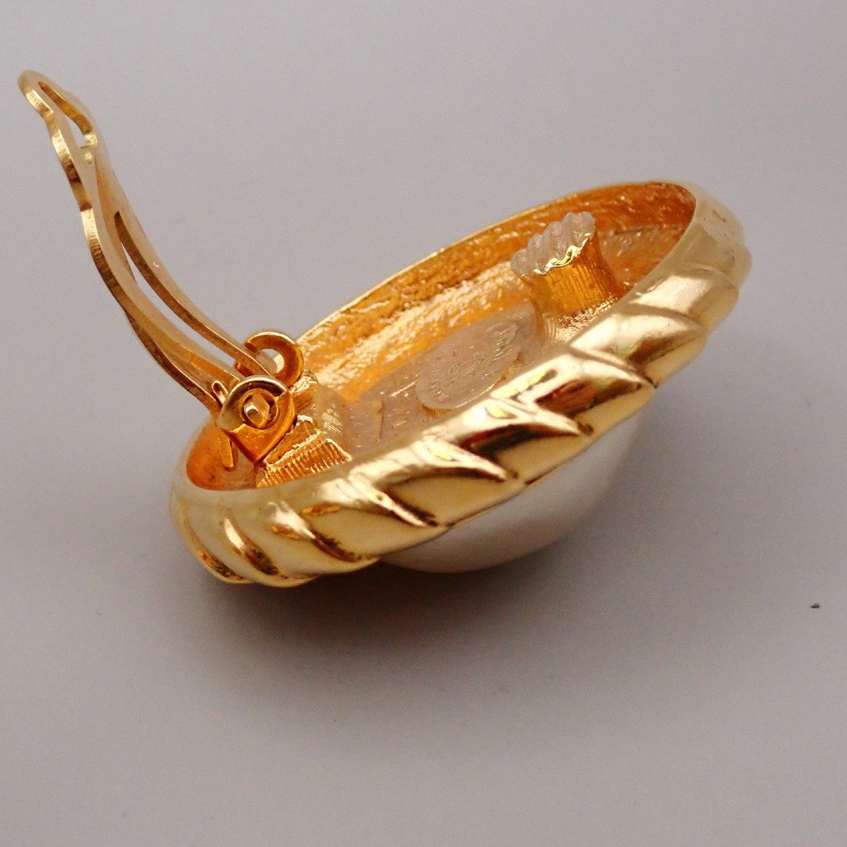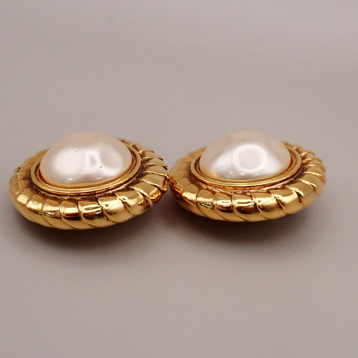 Chanel Vintage Round Clip-On Earrings Metal with Faux Pearl