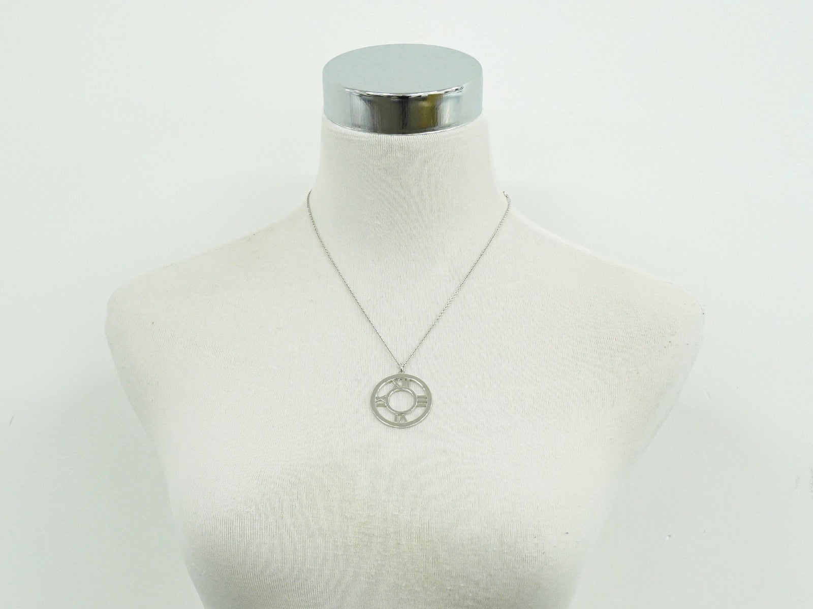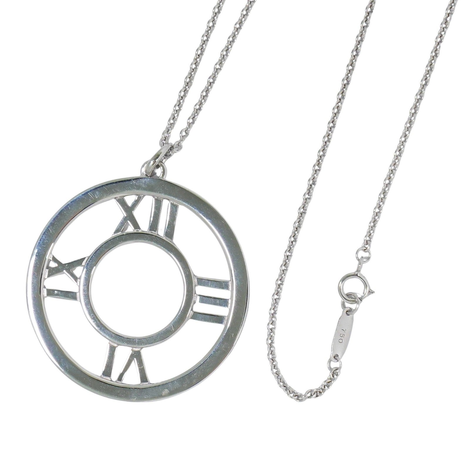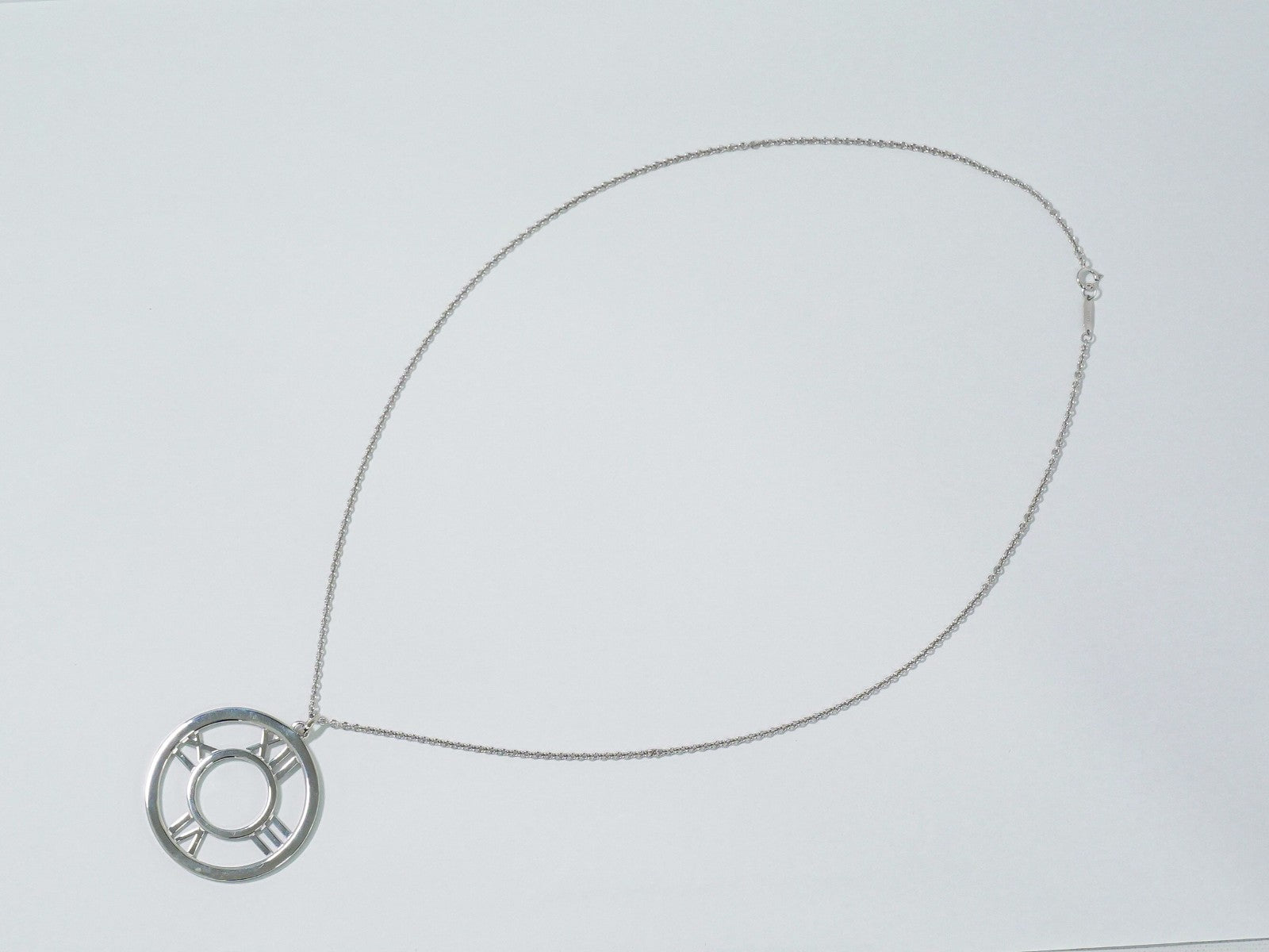 Tiffany & Co. Atlas Open Medallion Pendant Necklace 18K White Gold with Diamonds